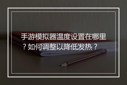 手游模拟器温度设置在哪里?如何调整以降低发热? 随着科技的不断发展,手游模拟器已经成为许多玩家在电脑上体验手游的利器。然而,长时间使用手游模拟器可能会导致电脑发热,影响游戏体验。本文将为您详细介绍手游模拟器温度设置的位置以及如何调整以降低发热。 一、手游模拟...