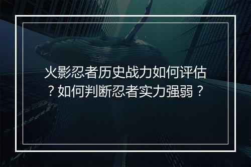 火影忍者:历史战力评估与忍者实力判断 在《火影忍者》这部经典的日本动漫中,忍者们的实力评估和实力强弱判断是贯穿整个故事的重要元素。本文将探讨《火影忍者》中历史战力的评估方法,以及如何判断忍者实力的强弱。 一、历史战力评估 1. 实力等级划分 在《火影忍者》中,忍...